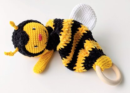 Bee Comforter and Teether pattern, written in USA crochet terms.