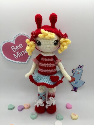 Bee Mine is 9 inches tall using a 2.50mm hook and Paintbox simply dk yarn. Although you may use any size hook or yarn, she will be smaller or taller. She is made from legs up to top of her head, one continuous piece. Attachment of arms, wings and hat by sewing. Pattern is written in English using US terminology Pdf file Printable eyes This is a PDF pattern not the finished item. Difficulty level : advanced beginner knowledge of basic stitches is required. with some intermediate bits. Magic ring chain stitch single crochet double crochet back loop increase decrease color change slip stitch hdc All rights reserved. No part of this PDF file may be reproduced, resold or redistributed in any form. You are welcome to sell your finished Item from this pattern. Please provide a link.