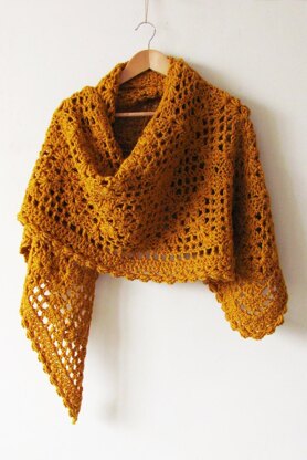Beehive is a triangle-shaped shawl made up of square and triangle motifs joined-as-you-go. Size is easily adjustable by skipping/adding motif rows. Edging crocheted after the motif portion is finished.