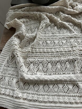 The pattern includes instructions for the blanket as well as for the romper. This cute set is perfect as a home-coming present, a first set to the newborn, or for the first strolls. The richly patterned blanket could easily be modified to other sizes by subtracting/adding pattern-repeats.