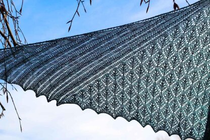 Beetlebum is a semi-circular shawl designed to use a single skein of lace-weight yarn. With two easy-to-follow lace patterns, this shawl is a pleasure to knit--not too complicated and just interesting enough. The lace patterns form three distinct shapes that look to me like a beetle opening its wings.