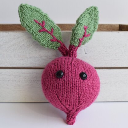 Introducing my Beetroot knitting pattern. Beetroots are also known as Beets in US English. Knitted veggies are super toys to encourage little ones to eat veg and greens, or you can use them as decorative items in your home. My veggies are worked flat, but most pieces could easily be converted to knitting in the round if that is your preference. You will also need to cast on and off, knit, purl, work increases and decreases, and sew seams.