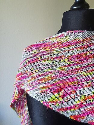 Here comes a pattern for a little shawl, showing the beauty of those single skeins of colorful handdyed yarn. Add scraps in matching or contrasting colors for some extra fun.