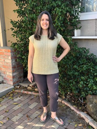 The Belinda Top crochet pattern for women is a lightweight, sleeveless shirt with just a hint of a cap sleeve. This beauty is crocheted simply with two rectangles.