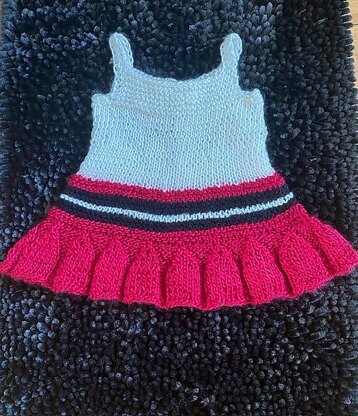 Size: 10 - 20 months Finished measurement (without stretching) : Top to bottom: 35 cm ( 14”) Underarm, flat not circular: 22 cm, 9 “ Pattern Rating: Easy/intermediate Designed and knitted by me. Pattern Rating: Easy/Intermediate. This dress is knit in garter and stockinette stitch, so there are no difficult stitches to memorize. It is an easy-to-follow pattern for beginners/intermediate, designed for a minimum of complications.