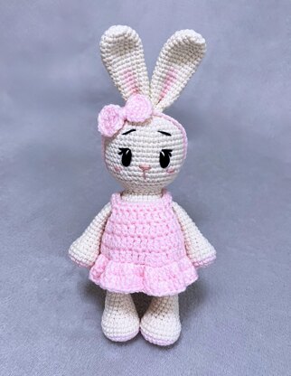 This small, charming crochet bunny is lovingly crochet to delight little ones and grown-ups alike. Dressed in a removable outfit and finished with a matching headband, this bunny is full of personality and timeless charm. Designed especially with toddlers in mind, all facial features are embroidered - no hard parts - making it safe for tiny hands and cuddles. Soft, lightweight, and easy to hold, this bunny is perfect for playtime, bedtime snuggles, or as a keepsake gift.