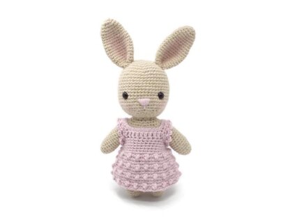 Using the materials suggested this bunny measures 26cm (10in). Any yarn can be used with this pattern with an appropriate size crochet hook to create a tight tension, although other yarns may affect the size of the finished toy. Suggested materials: DK (8ply) 100% wool yarn, 3mm crochet hook, toy stuffing and 9mm safety eyes.