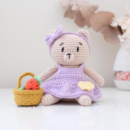 Bella the Spring Bear loves going out in her favourite purple dress to pick lots of strawberries (yum!). Once her basket is full, she goes home to make her signature dish - a strawberry tart!