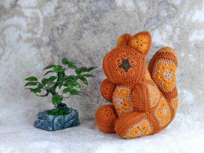 You can create this cute squirrel in the technique of African Flowers. First you crochet the single flower elements. For this you get a detailed and well illustrated pattern. Since several similar motifs are needed, you can soon crochet the flowers without having to look in the pattern. So you can always crochet a few flower elements in between and advance your work on the go.