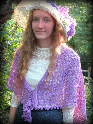 Belladonna's Lace contains directions for 3 different shaped wraps: Shawl, Shallow Shawl, and Scarf. The design begins with a point on one side and is worked across the body to the other side.
