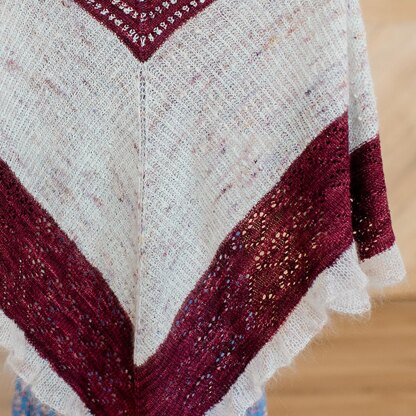 Worked from the bottom up, outside in, this shawl marries lace with texture in the best kind of way. Lace hearts are bordered by an airy ruffle, leading the way to squishy brioche finished with simple, slubby dotted colorwork. Each row gets faster and shorter as you go while rhythmic stitch patterns allow for portability.