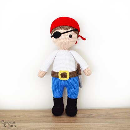 English Pattern Only. This pattern uses US Crochet Terms. The file contains a chart to show the conversions to UK Crochet Terms. Make your own "Ben the Friendly Pirate" with this CROCHET PATTERN. The pattern includes instructions on how to make a cute pirate. This PDF pattern includes 12 pages with step by step instructions and photos, so you can crochet your own toy. Finished Ben is about 18 in. (45 cm.) tall if you use worsted weight yarn and a 4.00 mm. crochet hook. For this pattern you need to have basic-intermediate crochet and amigurumi skills and to know how to read crochet patterns.