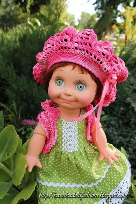 This Pattern Crochet is for Galoob Baby Face dolls, which include the patterns for Beret and Bolero. This can be made to fit an other 12” doll, for example, Kidz n Cats dolls