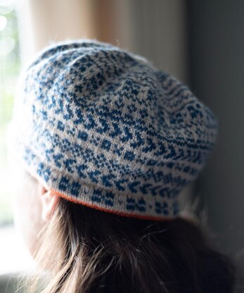 Bermondsey beret is a neat little beret knitted in the round using 4ply wool. The main beret is knitted in a simple 2-colour fair-isle, and the headband has a contrast facing, adding a hint of colour when the hat is worn.