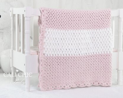 Crochet baby blanket pattern, Berries & Cream #167 for a cozy blanket with contrasting puff stitch stripes and easy puff shell edging. This is a design that works up quick and you will be proud to own or give as a gift for a family member or a lucky new mother at her baby shower!
