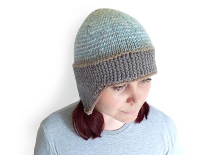 Betwixt is both a hat knit sideways and one knit bottom up, a hat knit in garter stitch and one knit in stockinette, a hat knit in a solid colour and one knit in stripes (and managing all this from a single skein of yarn!), this hat has everything you could desire, including cute earflaps for keeping out the chills.