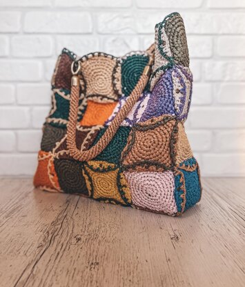 | One size only: | Finished bag from the specified materials: length - 16 inches (40 cm)- width - 4 inches (10 cm)- height - 16 inches (40 cm). Length the crocheting part of the handles - 22 inches (55 cm). |