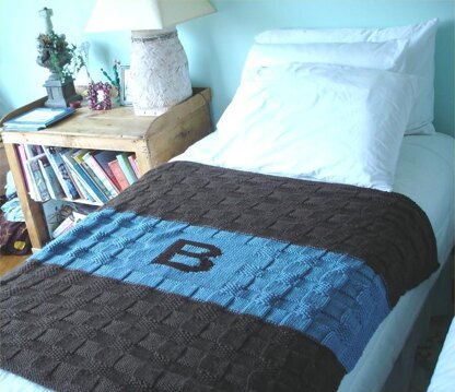 You are in a big bed now and no longer fit under your baby blanket. This is a great blanket for a toddler through teen. Fits on a twin bed. Finished Measurements are approx. 44"x 48". The sample was knit with Karabella Aurora bulky but any soft yarn that gauges at 3.5 sts per inch will work. All letters charted are included in pattern.
