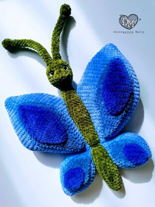 Wzór na wykonanie dużego motyla metodą szydełkową. Wzór w formie pliku PDF.