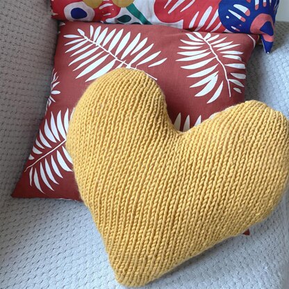 Our popular Big Heart cushion brightens up any room- knitted in chunky mustard yarn, this step-by-step pattern is suitable for knitters with basic knitting ability and the cushion knits up fast on 7mm knitting needles.