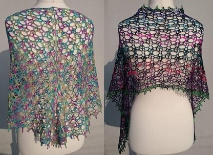 Charted and written instructions for both a triangular shaped top down shawl, and a rectangular wrap.