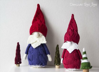 The finished Blue Gnome with hat is approximately 14 inches (36 cm) tall. The toys are knitted in the round and that is why the pattern is recommended for Advanced Beginner Knitters.