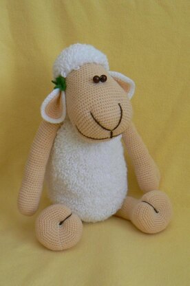 This pattern is for a bit larger Sheep. When using the material according our suggestion, the sheep will be about 40 cm tall (sitting).