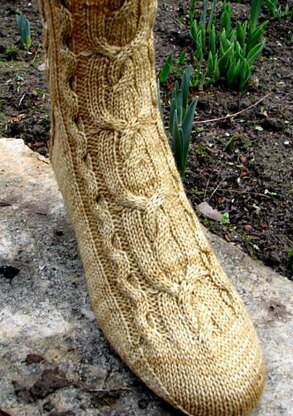 Skill Level Intermediate: includes knowledge of basic, top-down sock construction, cabling, textured stitches, and chart reading.