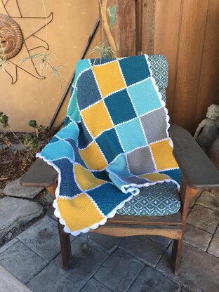 This is an easy blanket to make with two methods for joining blocks: one knitted and one crocheted, and 4 options for Borders. Video Tutorials are linked to the pattern, to show you exactly what to do.