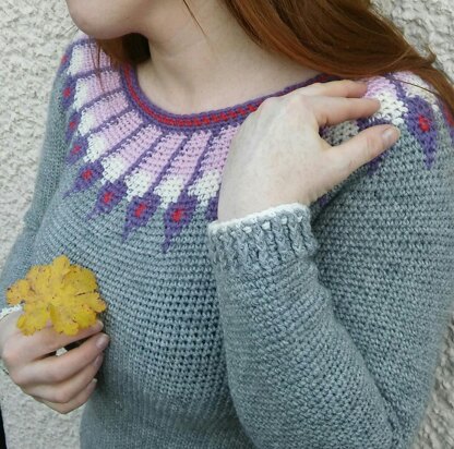 Use a cosy wool-blend DK to stitch this stylish colourwork jumper. The rather impressive tapestry crochet design was inspired by peacock feathers.