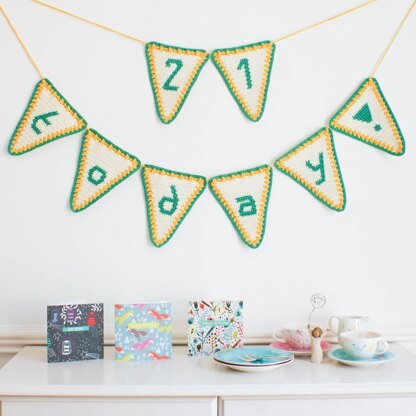 Use this crochet pattern to make a birthday age banner. The party banner is a great addition to your birthday celebrations. The numbers and letters are made using intarsia crochet and the pattern includes written instructions and a chart to make each flag. The pattern includes instructions to make numbers 0-9 and the letters to spell out ‘today!’. The flags are easy to change on the bunting so with a whole set of numbers you can celebrate every age. This pattern has been devised for right handed makers.