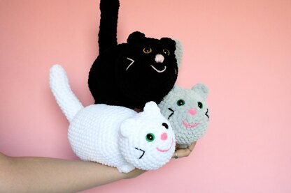 This pattern contains a low-sew plush cat. By low-sew, we mean that the only element that requires sewing is the tail when it has to be attached to the body. The rest of the cat is fully no-sew.
