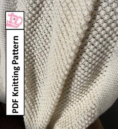 The pattern is written for three sizes of blanket in a line by line format. The blanket is knit in one piece, back and forth on a circular needle to accommodate the number of stitches.