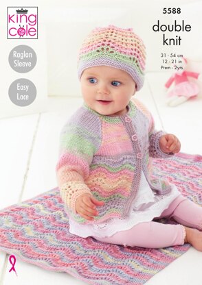 Blanket, Matinee Coat, Cardigan & Hat in King Cole Beaches DK - 5588 - Downloadable PDF