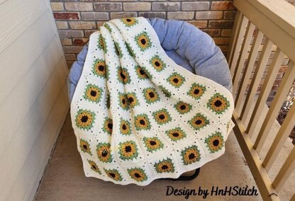 This is crochet pattern for Sunflower Granny Square Blanket. In this pattern, you will find step by step instructions with detailed pictures, including how to connect granny squares.