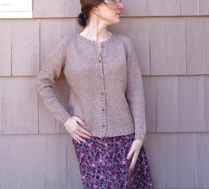 The perfect mid weight layer, this comfortable, top down cardigan has a round neck, raglan sleeves and waist shaping.