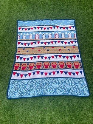 This pattern is for an overlay mosaic blanket. The pictured blanket is approximately 95 cm x 115 cm but the blanket can be made bigger or smaller by changing the number of repeats.