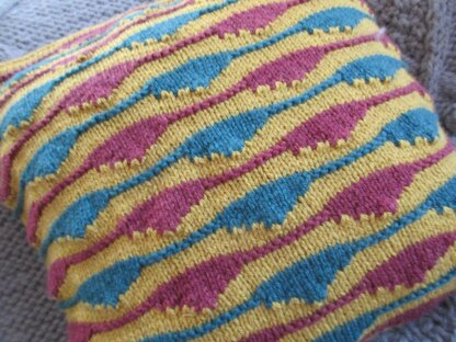This is a pattern for a blister stitch cushion cover originally designed for The Knitter. The front is a pattern worked with turning and slip stitch. The back is stocking stitch stripes.