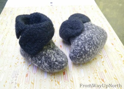 These felted booties are a great quick gift to whip up for your loved ones. Felting is fun and easy, you may get hooked watching your crocheted items change after a whirl in the washing machine.