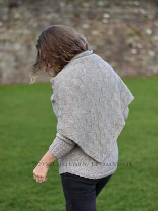**DESIGN OVERVIEW:**The triangle shawl is knitted sideways starting from corner to corner with fancy block stitch. The double edge stitches mimic I-cord. Pattern is easy to follow and has row-by-row instructions.