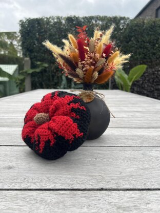 Create a dramatic Halloween accent with this red & black tapestry crochet pumpkin featuring a blood drip effect.