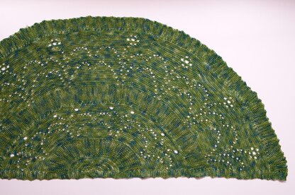 The lace sections are both fully written out and charted. There are six charts. The pattern includes a schema for the short row construction.