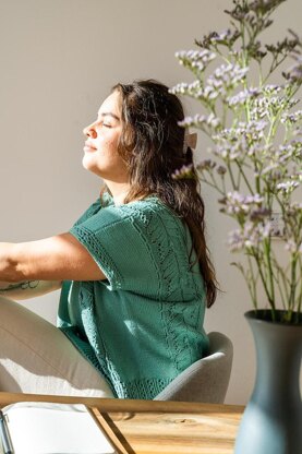 Warm-weather knitwear can be tricky - can this beloved craft of ours actually create something that’s cooling and delightful to wear when the temperatures rise? Yes, it absolutely can. In between the slightly cropped, boxy shape, breezy lace accents, and just-deep-enough V-neck, the Blossom T-Shirt has the potential to become your new favorite wardrobe staple.