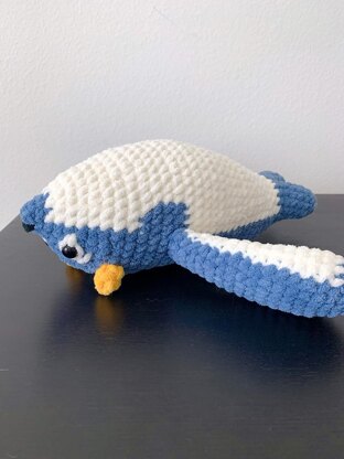 I made it with super bulky plushie yarn, so it's more huggable. It can also be made with worsted weight yarn.