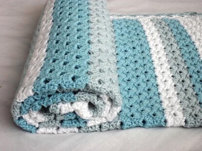 This cozy, colorful blanket would be a great homemade baby shower gift. The simplicity of color striping in fresh, modern design makes this lovely, very simple and quick pattern a perfect beginner project.