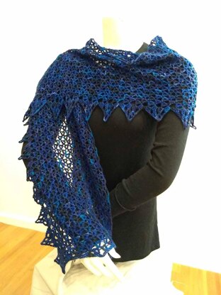 It is crocheted from the short edge and the triangle border is worked as you go. If you have more than one skein of yarn and wish to make a wider shawl, there are instructions for how to do so.