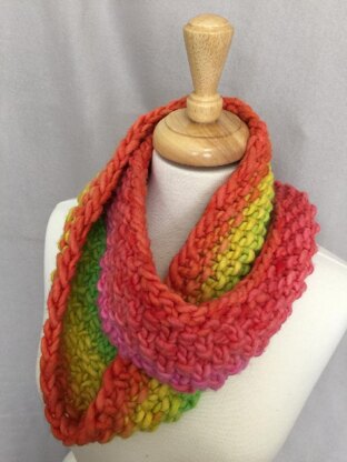 A two-part cowl worked in the round with no seams, yet the parts are connected! New knitters will delight in creating such a clever and stylish cowl, while more experienced knitters will share a chuckle over how such simple stitch patterns and a clever construction combine for a fun knit.