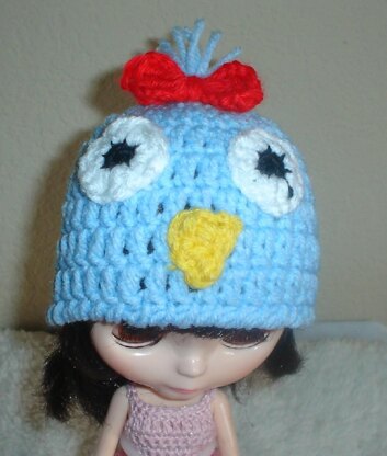 MATERIALS: G Hook 120 -200 yards 4 weight yarn pastel blue Small amounts of red for bow Small amount of yellow for beak Small amount of black and white for eyes