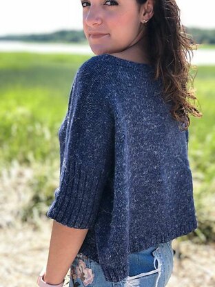 Blueprint takes a simple pullover silhouette and elevates it to something special. Graphic lace, a cropped (but adjustable) body with lots of positive ease and a notched hem, and slim sleeves make it carefree, fresh and modern. Top-down construction make this easy to customize the length.