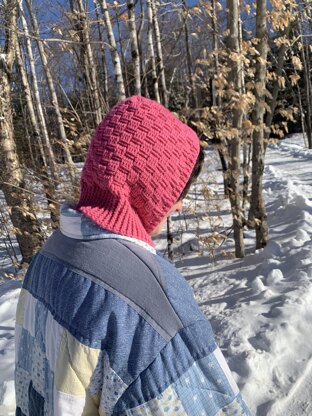 The Balaclava is worked in a basketweave pattern, and finished with a 1x1 ribbing around the neck and around the face. Designed to offer coverage to the head and neck while still having a flattering cut around the face.